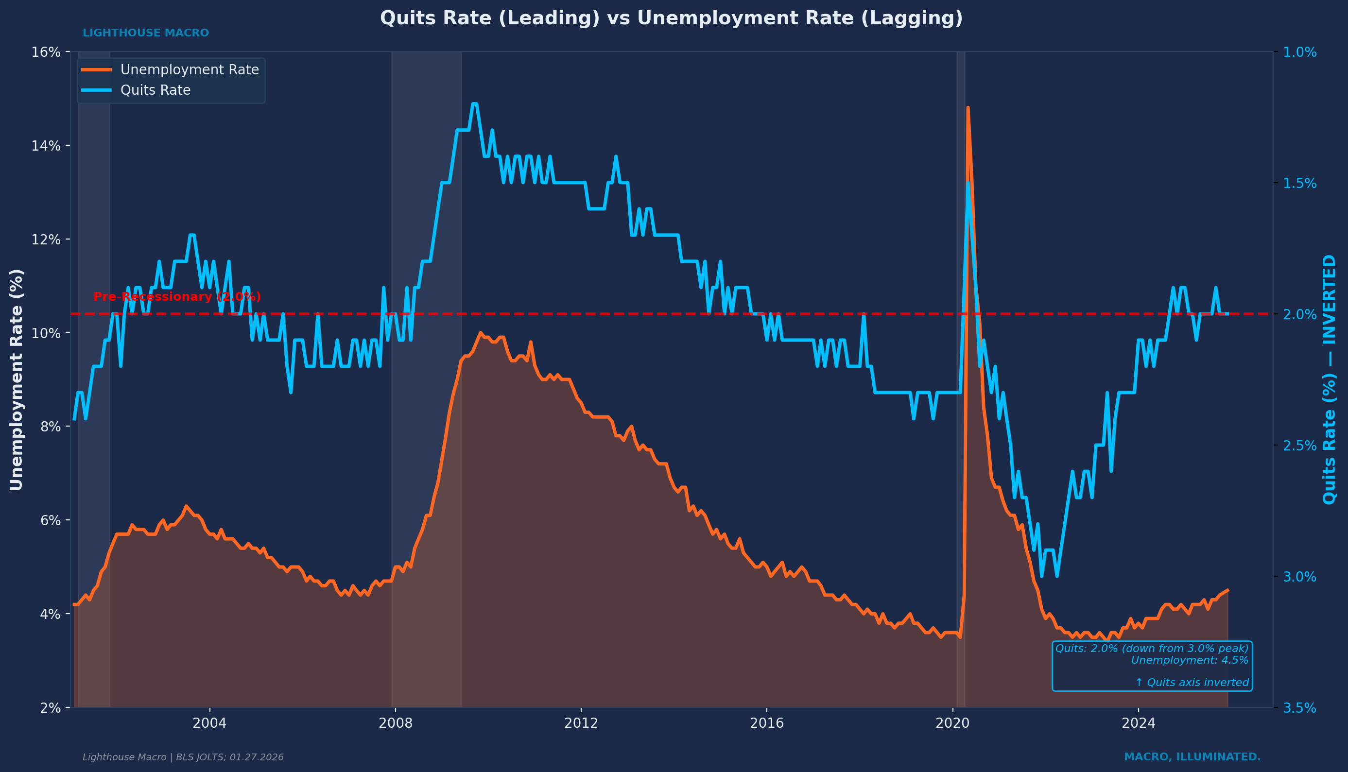 JOLTS Quits Rate. The truth serum. Watch for sustained readings below 2.0%. This is the single most important flow indicator.