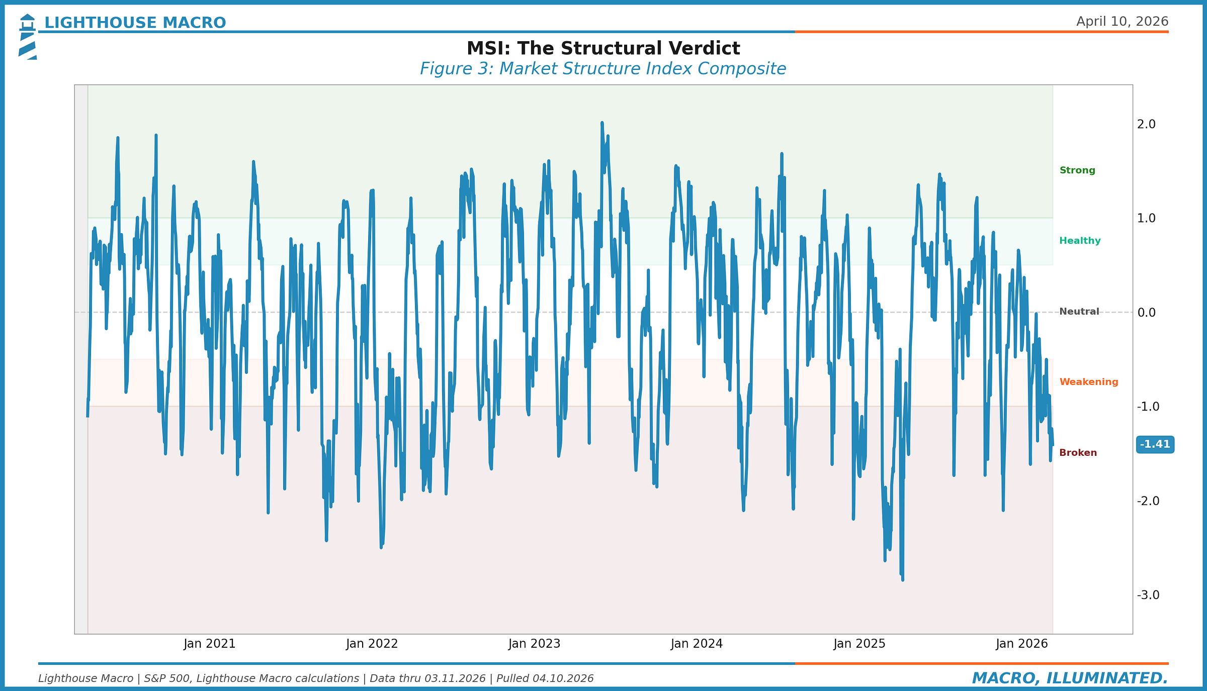 The MSI doesn’t tell you what will happen. It tells you where you stand and what would change the picture. That’s enough. In a market that mistakes a gap-up for a regime shift, clarity about the structural evidence is the edge.