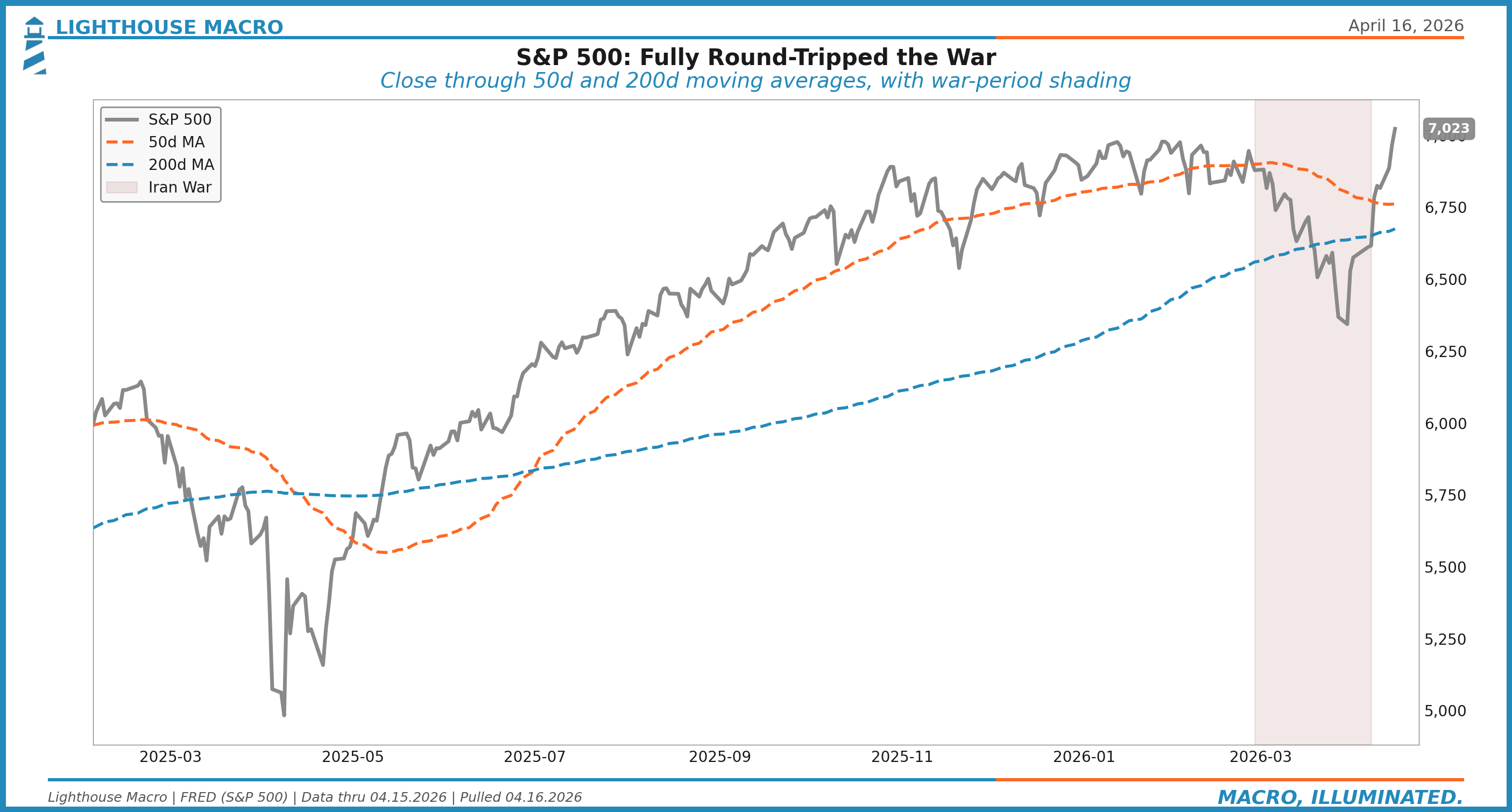 The S&P 500 closed April 15 at 7,022.96. A new all-time high. A ten percent rally off the late-March lows. The narrative is clean. Ceasefire, vol crushed, risk on, systematic funds re-leveraging into the bid. We’re seeing flows everywhere. We’re not seeing conviction.